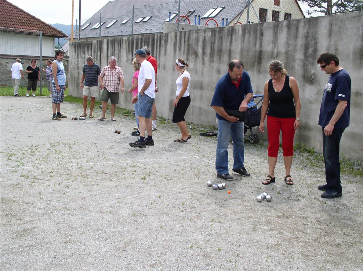 Jako na pláži se mohou cítit ti, kteří v 15 hodin nastupují na hřišti Na Starce k turnaji v pétanque. Slunce doslova praží, nikde žádný stín, kovové koule se lesknou a bílý štěrk bodá do očí. Ještě nalosovat jednotlivé dvojice a jde se na věc. U pétanque panuje vždy velice vstřícná nálada, navíc soutěž je vždy skvěle organizačně připravená. V pohodě se tu pomalu rýsuje další bod pro Sedlec. Výsledkem 8 : 2 poráží Prčici a zvyšuje náskok na 9 : 7.