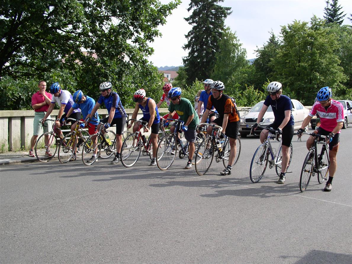 Poslední měření sil v odpoledním bloku již tradičně patří cyklistům. Start a cíl je opět domluven na mostě Karla Burky, trasa vede přes Prčici na Přestavlky, František, Vrchotice, Šanovice a kolem koupaliště a penzionu Dalmo zpět na most. Ale již po nahlášení startovky je patrné, že Prčice letos nemá moc šancí. Zatímco Sedlec dokázal na startovní čáru postavit 10 borců, Prčice pouhé čtyři. Po rychlé poradě je dohodnuto, že se bude klasifikovat jen prvních osm sedleckých, i to však je nepřekonatelná přesila. Přesto je krátce po 17. hodině odstartováno a cyklistický peloton se vydává na trať. Za trochu větší čtvrthodinku do cíle vjíždí první závodník, za ním druhý, pak třetí… všichni ze sedleckého týmu. První prčický cyklista končí až hluboko v poli. Jak se pak v závěru dozvídáme, nejstarší účastník, Jan Nousek senior, měl na trase kolizi a při pádu se zranil. Od velkých komplikací ho zachránila cyklistická přilba. Ta ale vzala za své. V 17,45 hodin vyhlašuje Pavel Dejmalík výsledek. Sedlec cyklistický závod vyhrává poměrem 34 : 2 a navyšuje svůj náskok před Prčicí již na 11 : 8. Takový výsledek byl i loni. Bude se historie opakovat?