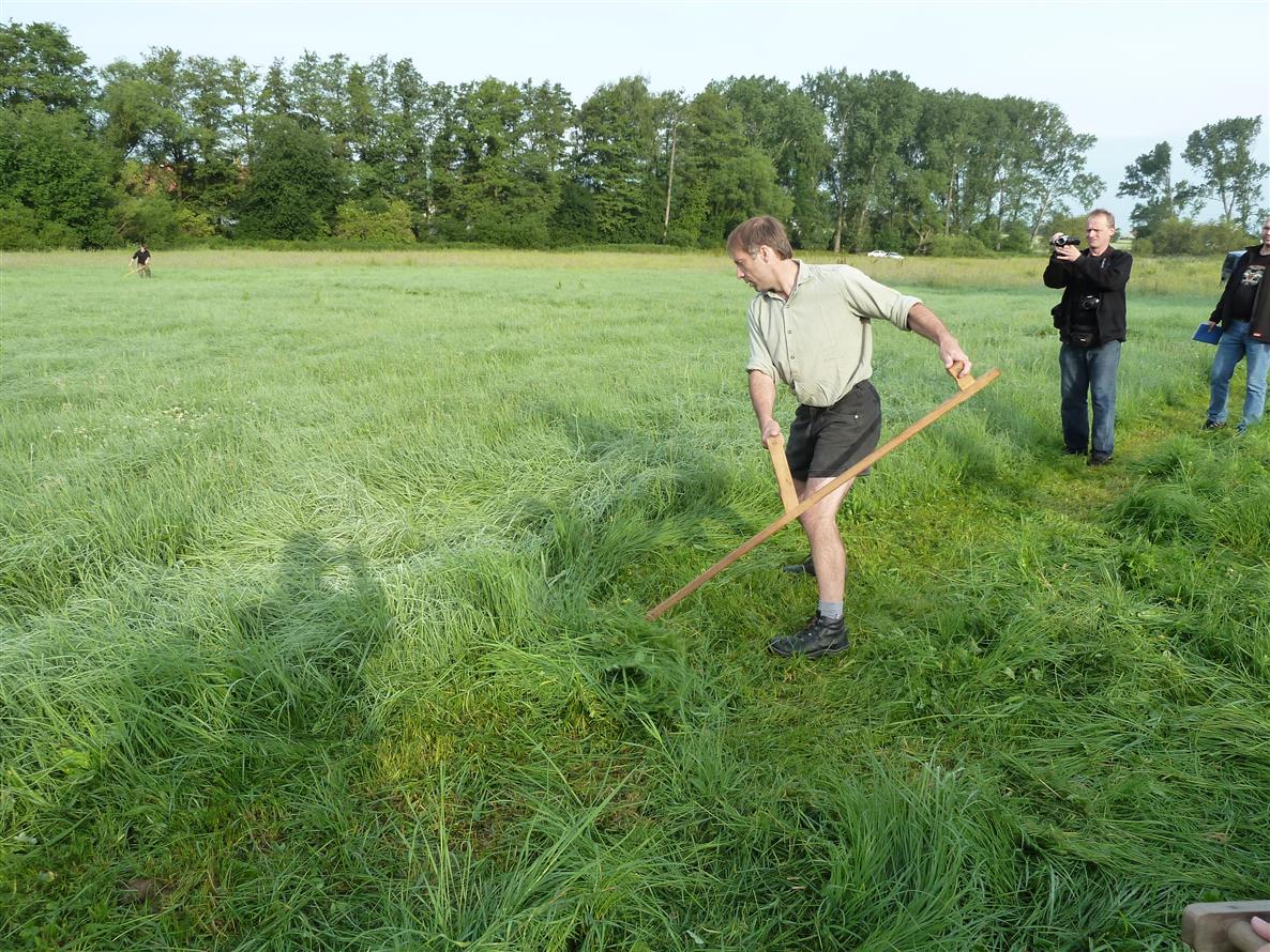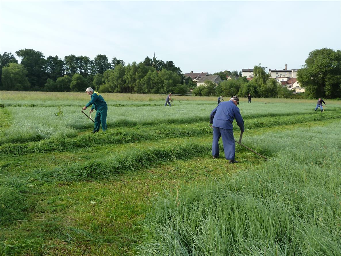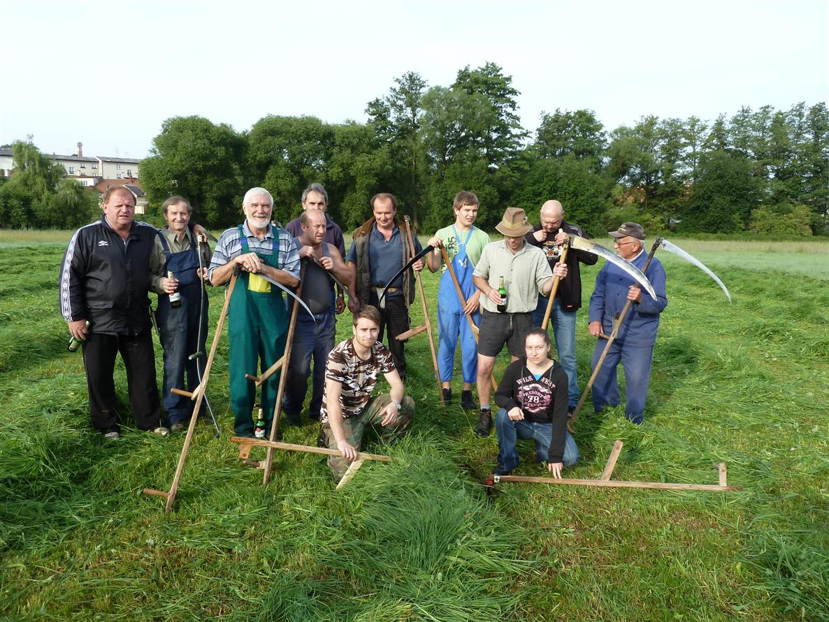 Začínalo se již tradičně v 7 hodin na louce pod hřištěm. Na týmy čekaly dva pečlivě vyměřené obdélníky o rozměrech 15 x 35 m a na nich šťavnatá cirka 25 cm vysoká otava. Oba celky se dopředu dohodly na pravidlech a pak už se bez dlouhých cavyků do toho daly. Od začátku byl boj vyrovnaný, ale zhruba od půlky už začalo být znát, že prčičtí mají navrch. Ještě poslední minutu před koncem za to Sedlec vzal, ale Prčice si své historicky druhé vítězství v této soutěži vzít nadala. Časem 13,09 zvítězila. Sedlec sekání dokončil o 31 vteřin později.