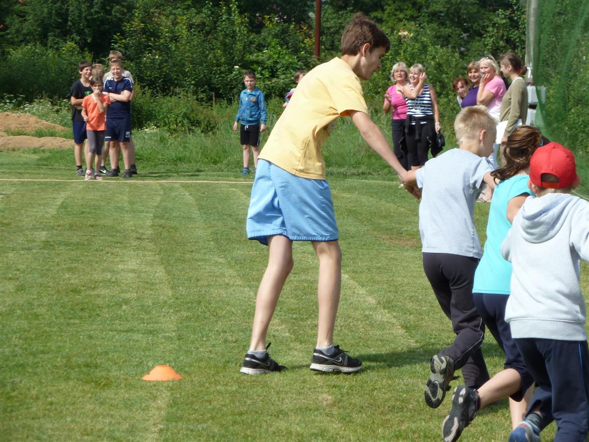 V deset hodin se na hřišti TJ Sokol scházely i děti. Jejich soutěž se odehrávala na cvičném hřišti a skládala se z několika her. Sluníčko už v tu dobu pěkně hřálo a děti na pečlivě střiženém trávníku podávaly výkony s urputností dětem vlastní. Z té urputnosti se nakonec zrodil výsledek 5:1 pro Prčici.