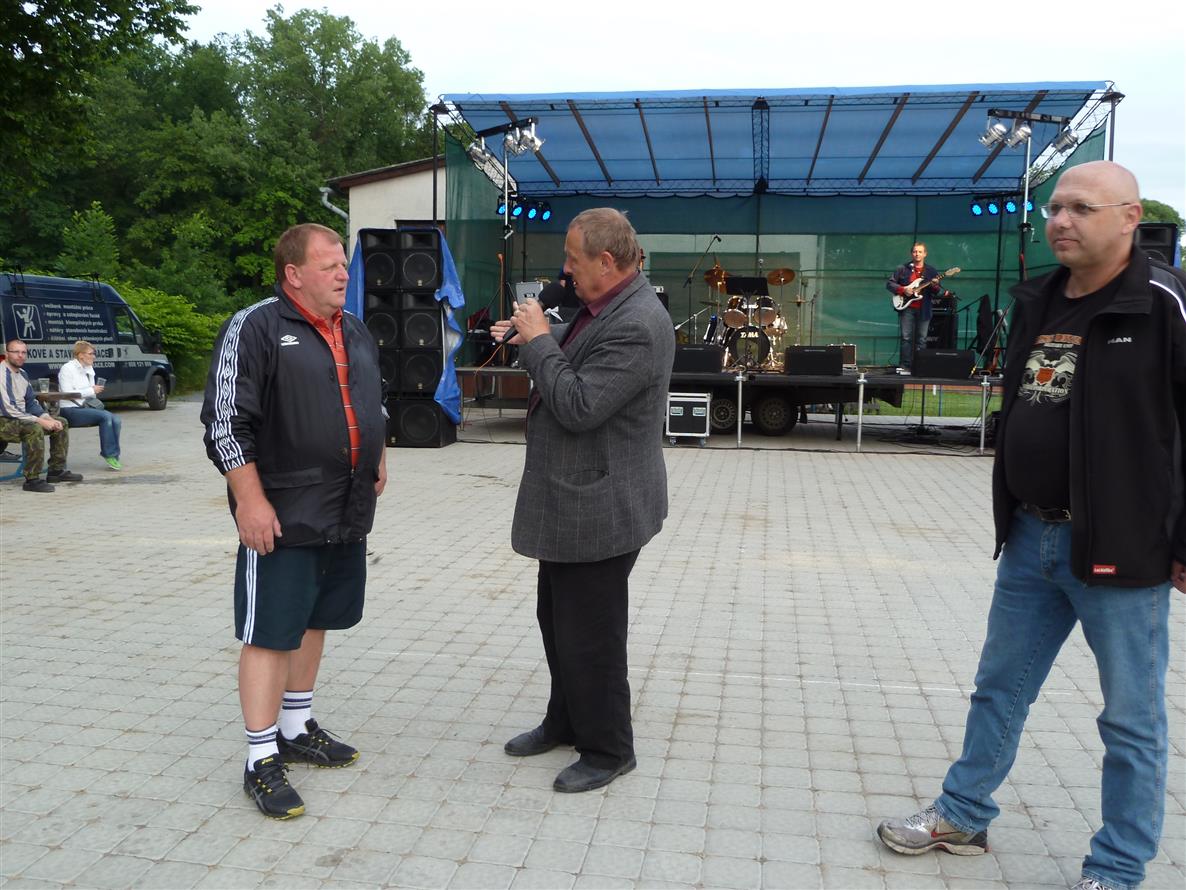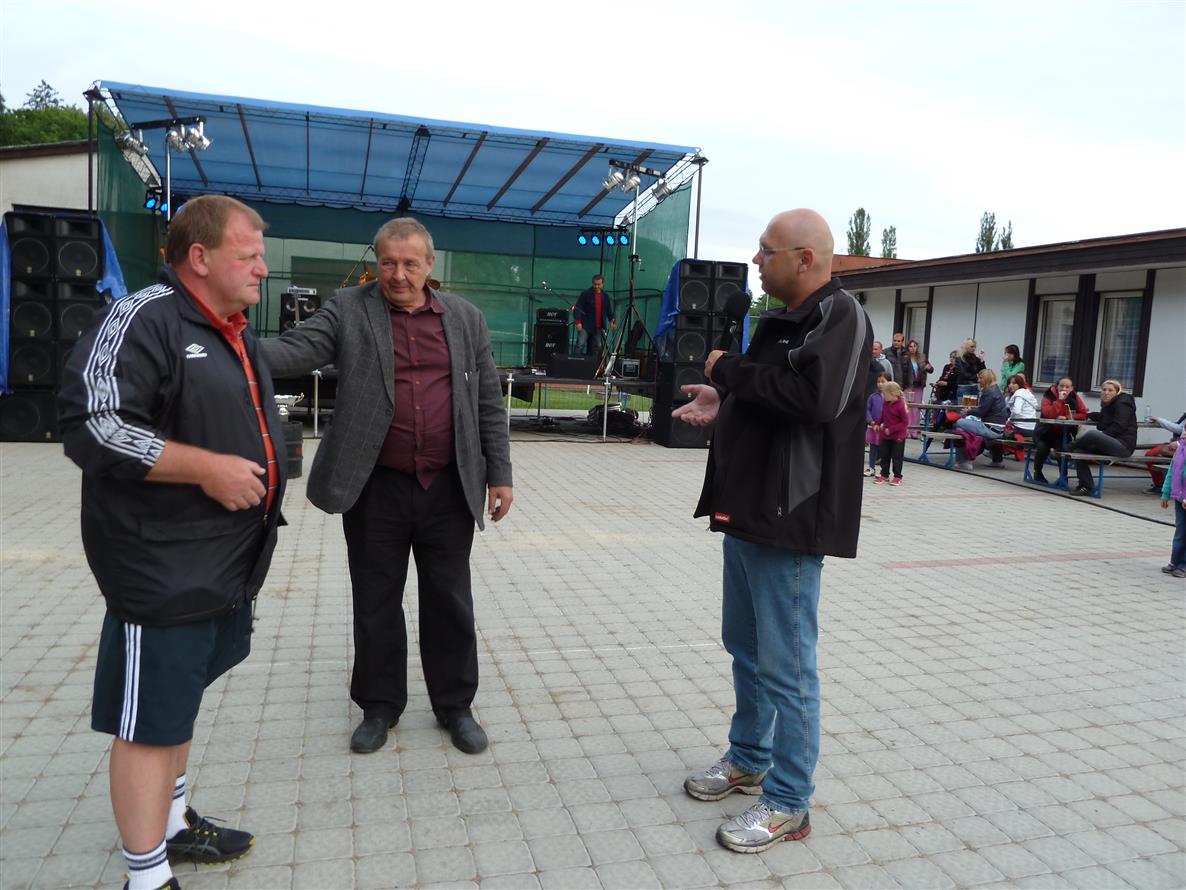 V 9 hodin se tradičně zahajuje Derby, je to taková malá oficialitka, ale k Derby patří. Letos zahájení proběhlo v prostoru parkoviště před kabinami TJ Sokol, kde se konalo i večerní finále. Byla tu starostka města Mirka Jeřábková i místostarosta Pavel Král, byli tu hejtmani Jan Vodňanský a Luboš Kukačka i jeho zástupkyně Jana Caltová, byl tu místí kameraman Václav Peterka, byl tu také putovní pohár pro vítěze a byli tu i diváci. Na dlouhé řeči nebylo moc času, někde se už začínalo soutěžit. Proto starostka vyhlásila Derby 2013 za zahájené, hejtmani si podali ruce, padlo pár slov z každé strany, čemuž přihlížející zatleskali a pak se už všichni rozešli za svým.