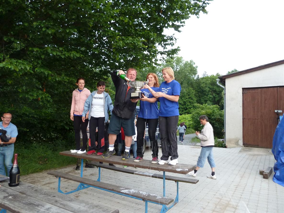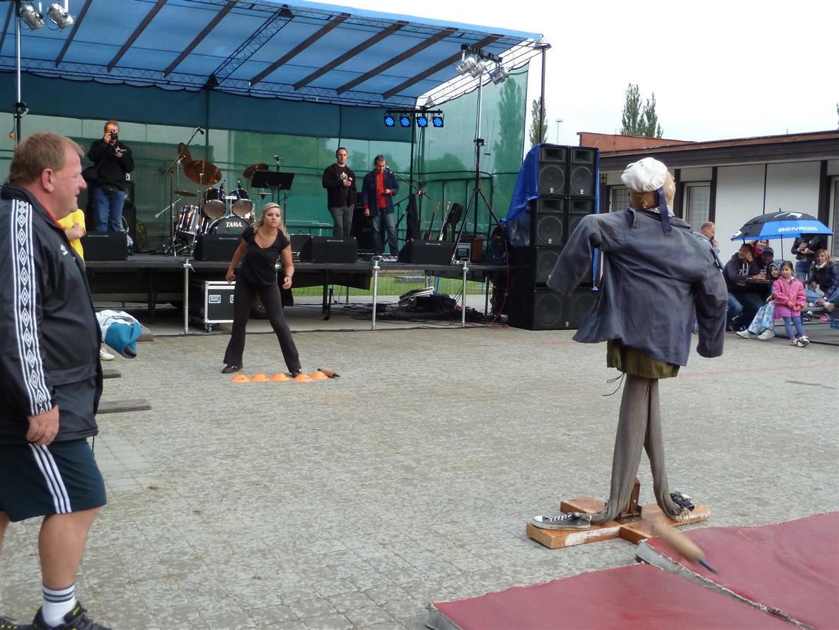 Kolem 18. hodiny jsme tedy znali výsledky všech denních soutěží a pomalu se připravovali na večerní finále. To se letos poprvé odehrávalo na parkovišti před budovou TJ Sokol Sedlec-Prčice. Důvod této změny byl zřejmý – mokro. Zpevněná betonová plocha skýtala ideální prostor pro pohodlné konání posledního dějství Derby. Proto jsme také zavedli další opatření, zákaz příjezdu aut až k samotnému areálu. Kdo chtěl přijet na Derby autem, musel ho odstavit na parkovišti o pár desítek metrů dříve a ten kousek dojít pěšky. Snad jsme tím nikoho od návštěvy Derby neodradili.