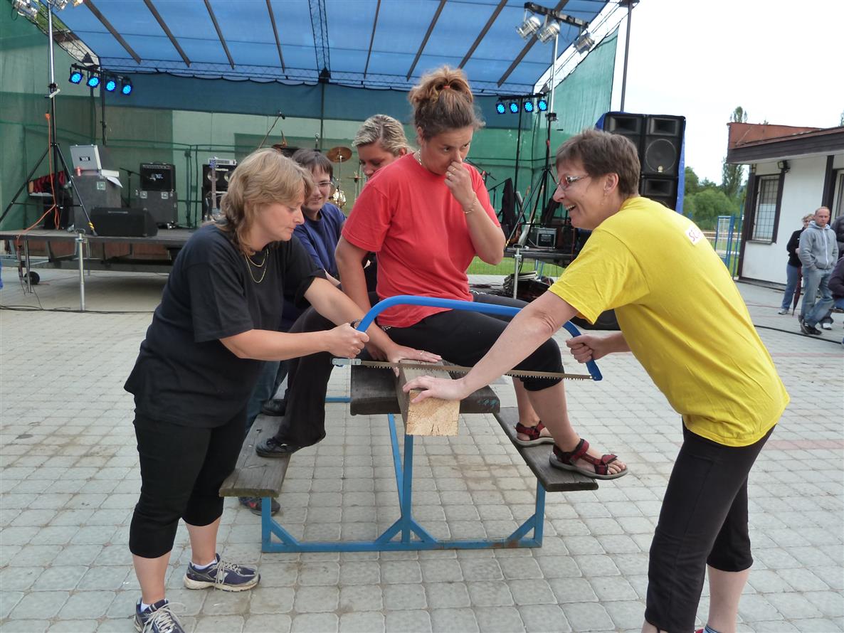 Úplně závěrečná soutěž Derby patří třetímu kolu ženského trojboje, vše mají v rukách ženy. A ty budou řezat trám pilou. Kapitánky obou týmů už zaujaly posed na hranolech, kolegyně se chopily pil a poslední soutěž se rozjela. Naše ženy se umí postavit i k takové činnosti, jako je řezání pilou a tak je záhy hotovo. První přeřezává Prčice a připisuje si za dámský trojboj cenný bod do celkového skóre. Zároveň Prčice vyhrává XIV. ročník Derby poměrem 13:9.