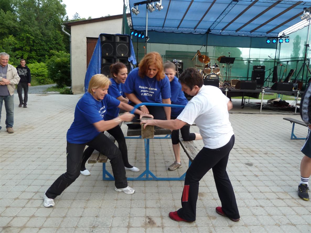 Pak nastupují muži, respektive chlapi, protože se připravuje první kolo přetahování lanem. Proti sedlecké síle nemají prčičtí muži šanci, a i když to také nejsou žádní střízlíci, na hladkém povrchu je sedlečtí siláci rychle přetahují.
