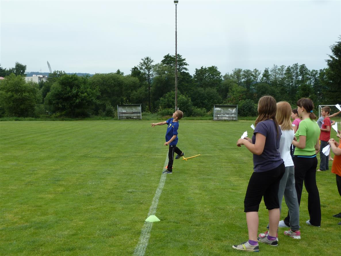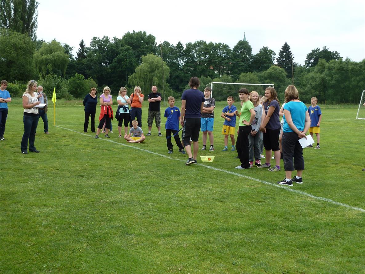 Vzduch se zatím příjemně oteplil, chvílemi je až dusno. A pak to přijde, zatím sice jen slabě, ale přesto začíná dnes poprvé pršet. Právě v okamžiku, kdy se na cvičném hřišti scházejí ke společnému zápolení děti. Naštěstí přeháňka rychle končí a děti se mohou pustit do měření sil. Čeká na ně dohromady 7 soutěží, po jejichž dokončení je znám výsledek, a ten zní: další bod pro Prčici. Stav je 3:2 pro Prčici.