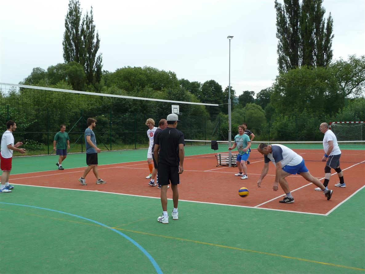 Nad městem se honí černá mračna, často k zemi padá tu drobný, tu hustější déšť. A pořadatelům na čele naskakuje pořádná vráska. Co s tím? Za malou chvíli by měla začít soutěž ve volejbale! Ženy se už ke svému duelu scházejí. Nebude nutné začátek duelu posunout? Nakonec se ale počasí smiluje a dokonce začíná kradmo vykukovat sluníčko. Sedlecké ženy využívají přízně počasí a porážejí prčické. Za nějakou chvilku po nich nastupují na kurt také muži a vedou si obdobně. Prčice tak prohrává volejbal 0:2 na zápasy a Sedlec upravuje průběžný stav na 6:7 pro Prčici.