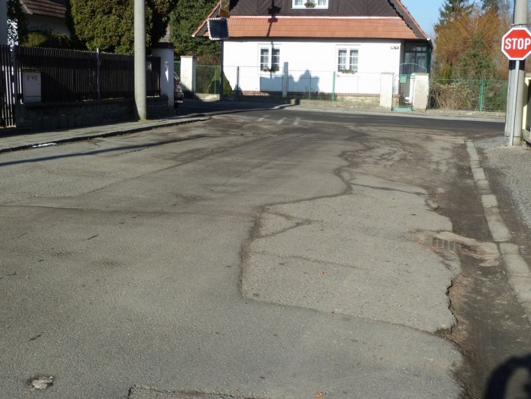 Stav komunikací před opravou - ulice Kvašťovská