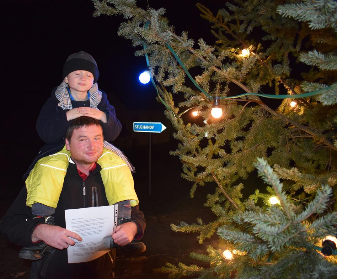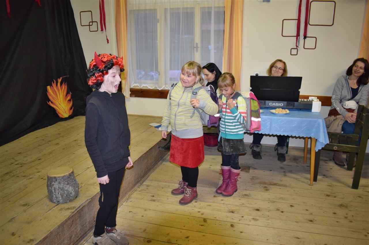 V neděli 3. prosince také v Kvasejovicích osadníci rozsvítili vánoční strom. Všichni se ale nejrpve sešli v domě hasičů Eden, kam zavítal i Mikuláš s andělem a čerty. Foto František Vávra
