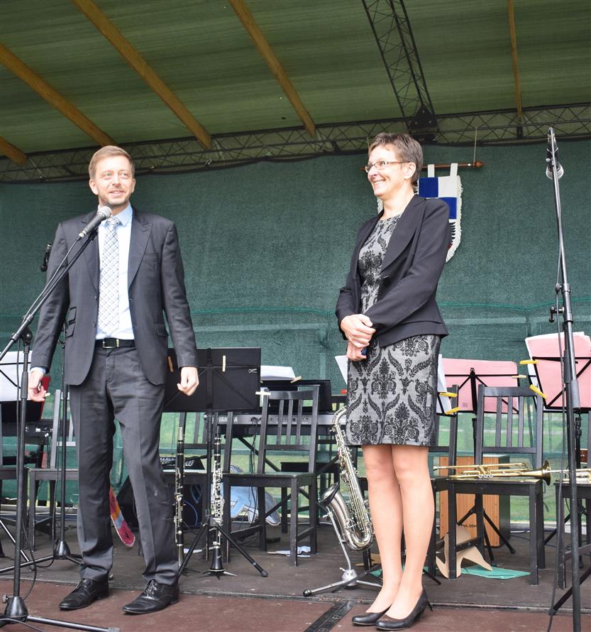 Od 13 hodin program pokračoval v zámeckém parku v Prčici, kde starostka města Miroslava Jeřábková přivítala všechny přítomné a představila vzácné hosty. Pozvání přijali například předseda Poslanecké sněmovny Parlamentu České republiky Jan Hamáček, bývalá ministryně školství Kateřina Valachová, poslanec Poslanecké sněmovny Parlamentu České republiky za Středočeský kraj Václav Zemek či náměstci hejtmanky Středočeského kraje Vít Rakušan a Ivo Šanc, kteří z pódia pronesli své zdravice. Přijeli i starostové okolních obcí – Heřmaniček, Nadějkova, Jistebnice, Votic a Nedrahovic, dorazil ředitel územního odboru Příbram HZS Středočeského kraje Tomáš Horvát a velitel stanice Sedlčany Petr Hron a byl tu i čestný občan města, pan Stanislav Rataj.