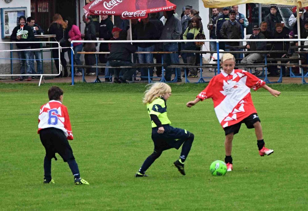 O poločase zápasu se na trávníku publiku představili také domácí budoucí naděje, tým přípravky. Někteří malí fotbalisté jen nedávno vyrostli z dětských plenek, s míčem si už ale poradit uměli.