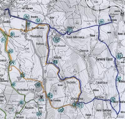 Po silnici se vrátíme do Prčice, chceme-li však jít až do Sedlce, cestu si trochu prodloužíme po modré značce kolem sv. Isidora.